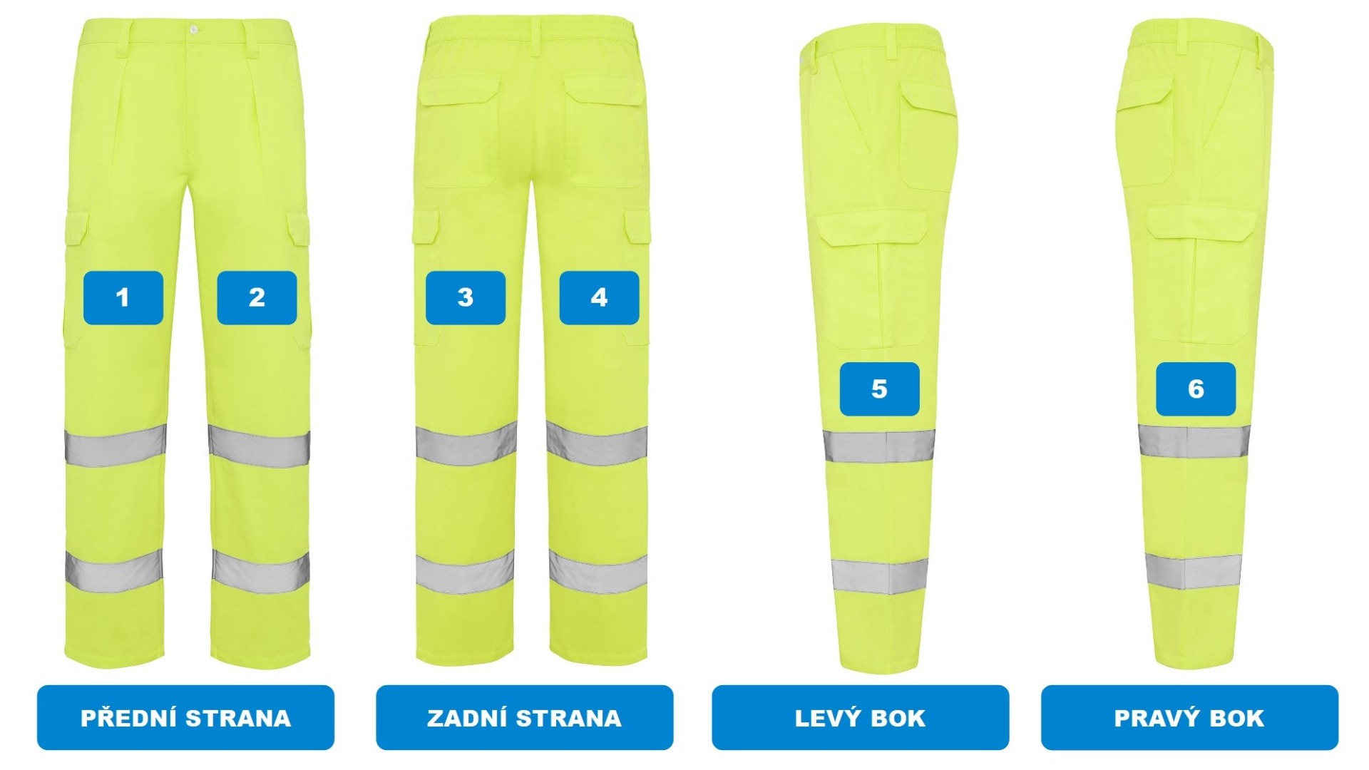 - Pracovní kalhoty s vysokou viditelností. Nastavitelný elastický pas v zadní části.