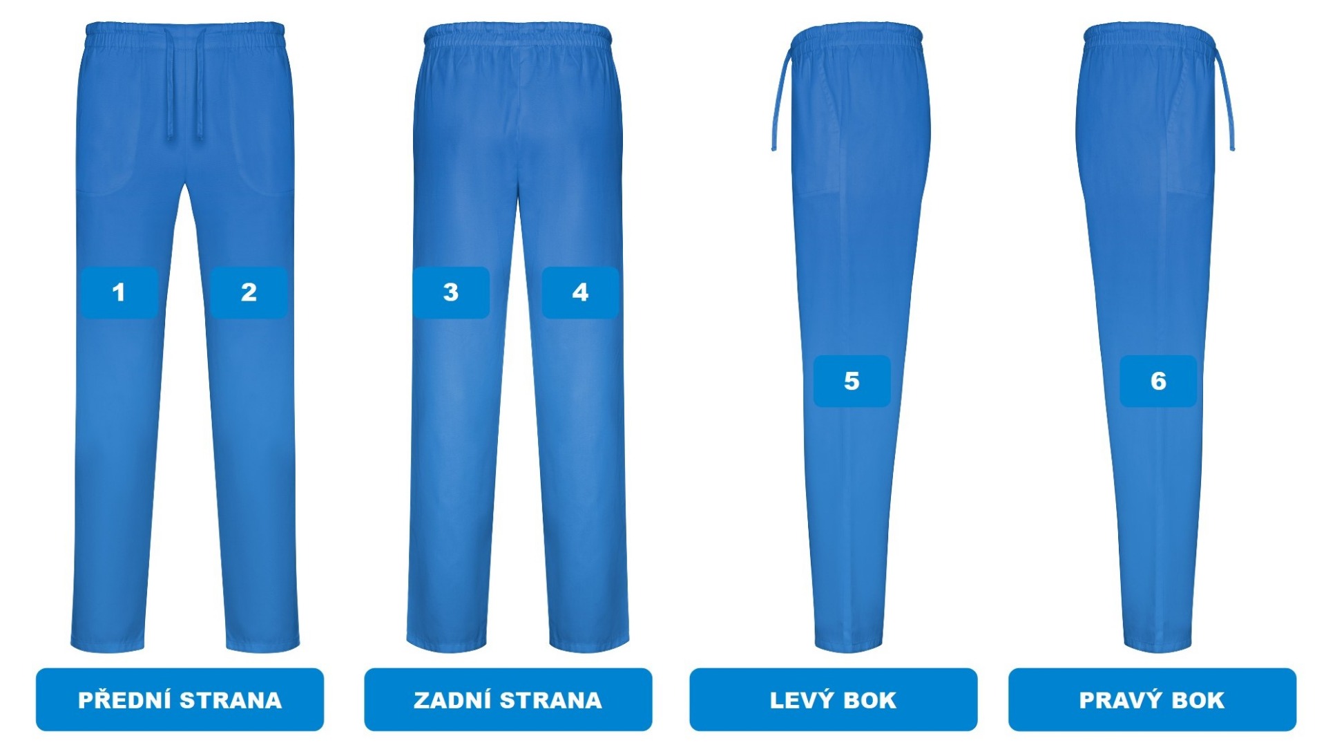 - Kalhoty mají elastický pas, nastavitelný popruh a francouzský kapsy.