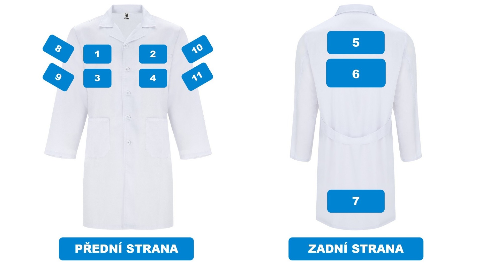 - Pánský pracovní plášť Vaccine, který má límec s klopou, středové zapínání na 5 knoflíků ve stejné barvě plaště, náprsní kapsu, dvě postranní kapsy a pásek vzadu.