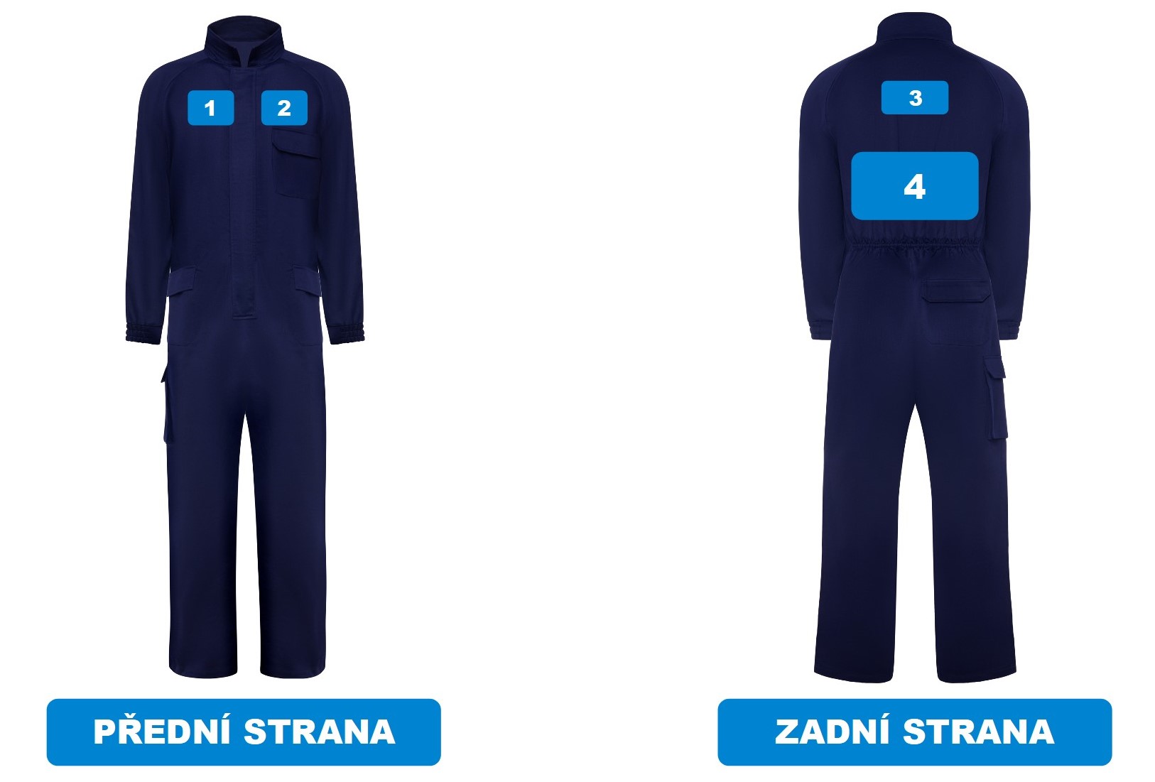 - Pracovní kombinéza z nehořlavé látky se zapínáním na zip s klopou se zapínám na suchý zip.