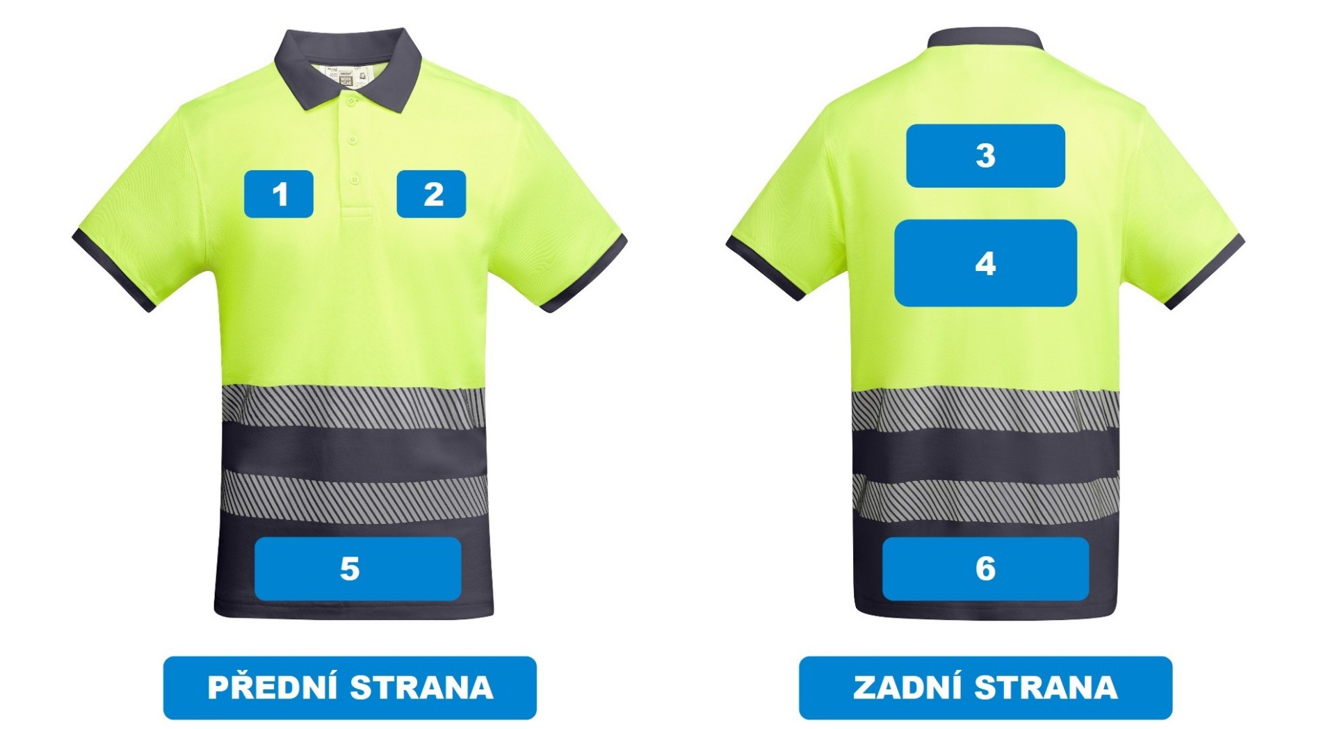 - Dva segmentové pruhy s vysokou viditelností na hrudi.